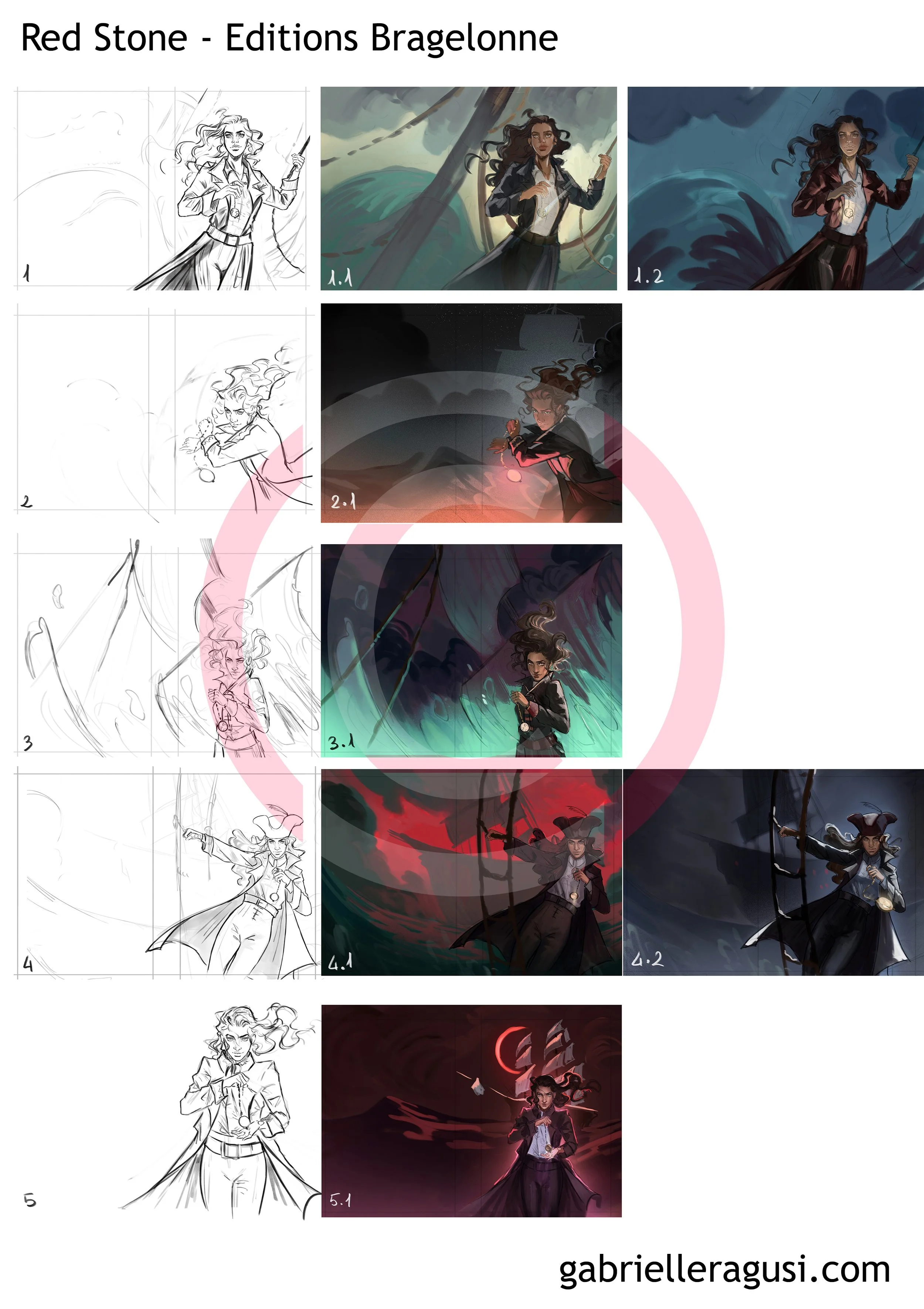 I like exploring colour and light along with the sketch, right away. I think that showing a more or less detailed rough work in progress helps the client visualise the final cover. In this instance, I think I showed the publisher one more WIP once they approved the sketch, and then I delivered the final without any extra revisions needed, since we’d established all the important information between the approval of the sketch and the first and only work in progress preview.
